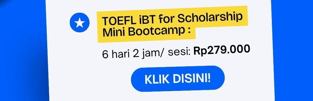 Jangan biarkan skor TOEFL/IELTS jadi penghalang beasiswa impianmu. PILIH KELAS DIBAWAH yang sesuai kebutuhan dan dapatkan beasiswa impianmu!